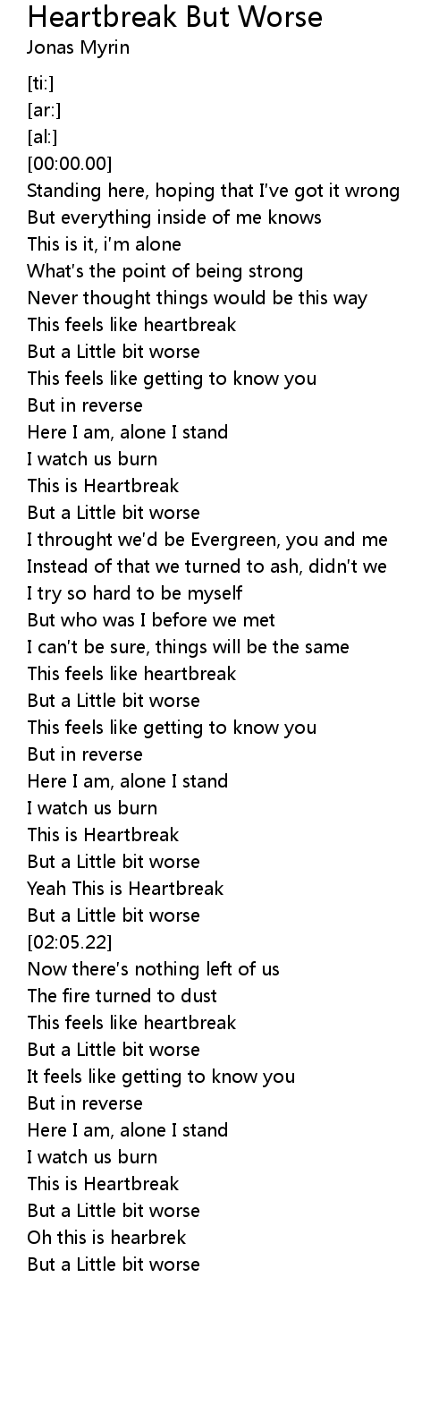 | [00:07.13] | Standing here, hoping that I ve got it wrong |