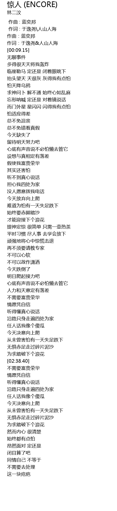 | [02:20.88] | 今天决意向上爬 |