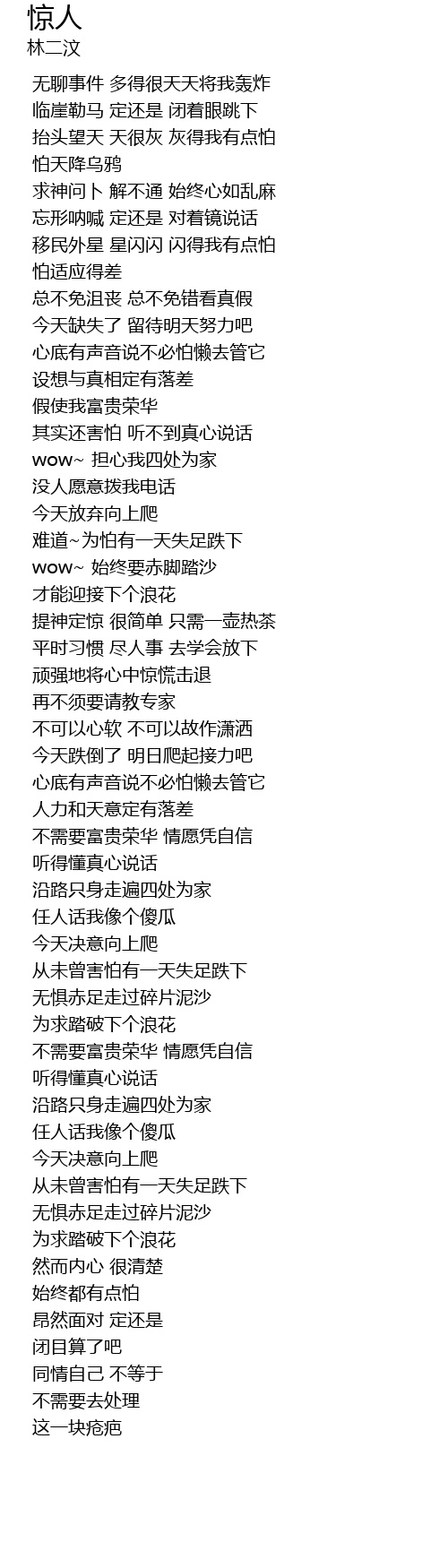 | [01:49.160] | 难道~为怕有一天失足跌下 |