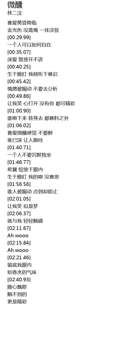 | [01:32.98] | 喜爱微醺感觉 不要醉 |