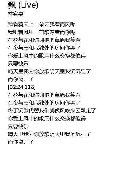 | [00:32.728] | wo kan zhe tian shang yi duo yun piao zhe er feng ne |