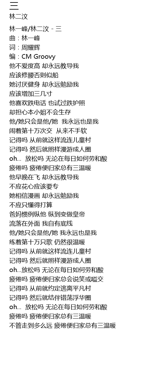 | [00:00.75] | 林一峰/林二汶 - 三 |