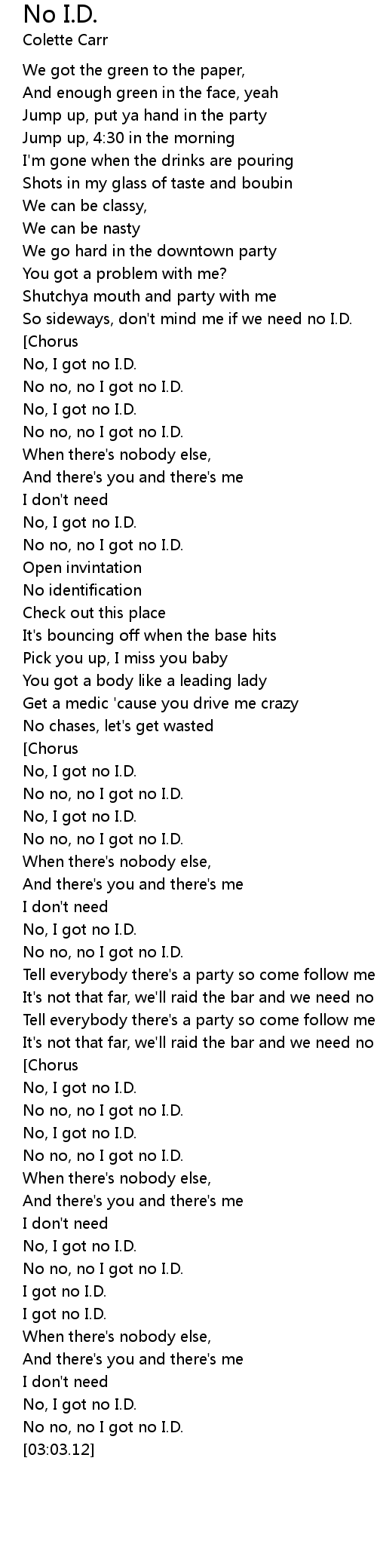 No, I got no I.D. |