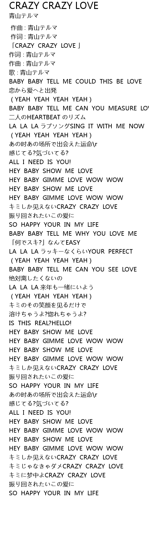 | [03:18.20] | CRAZY CRAZY LOVE |