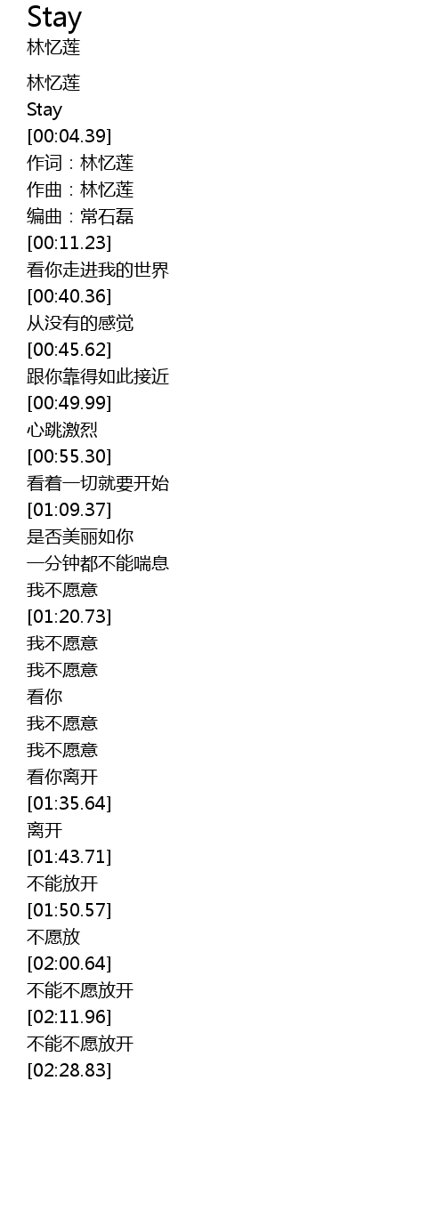 | [00:02.21] | Stay |