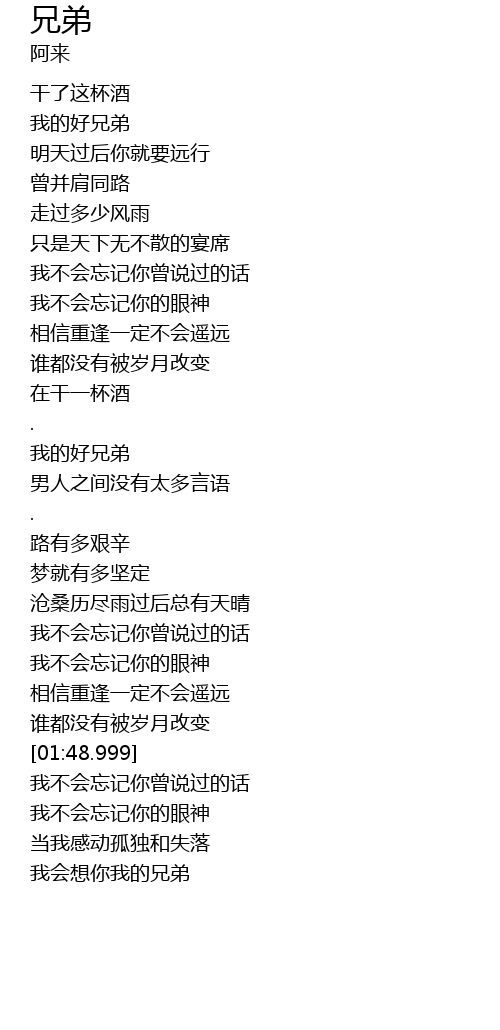 | [02:19.690] | 我会想你我的兄弟 |