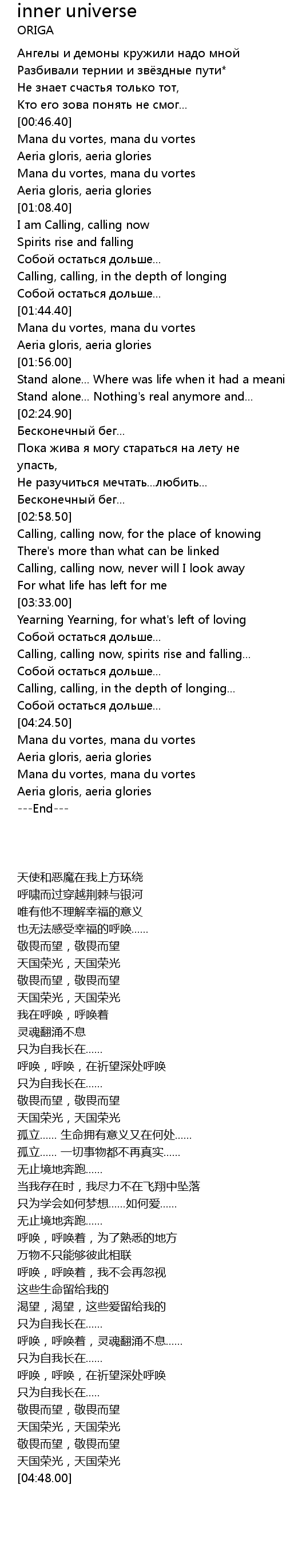 | [04:07.50] | Calling, calling, in the depth of longing... |