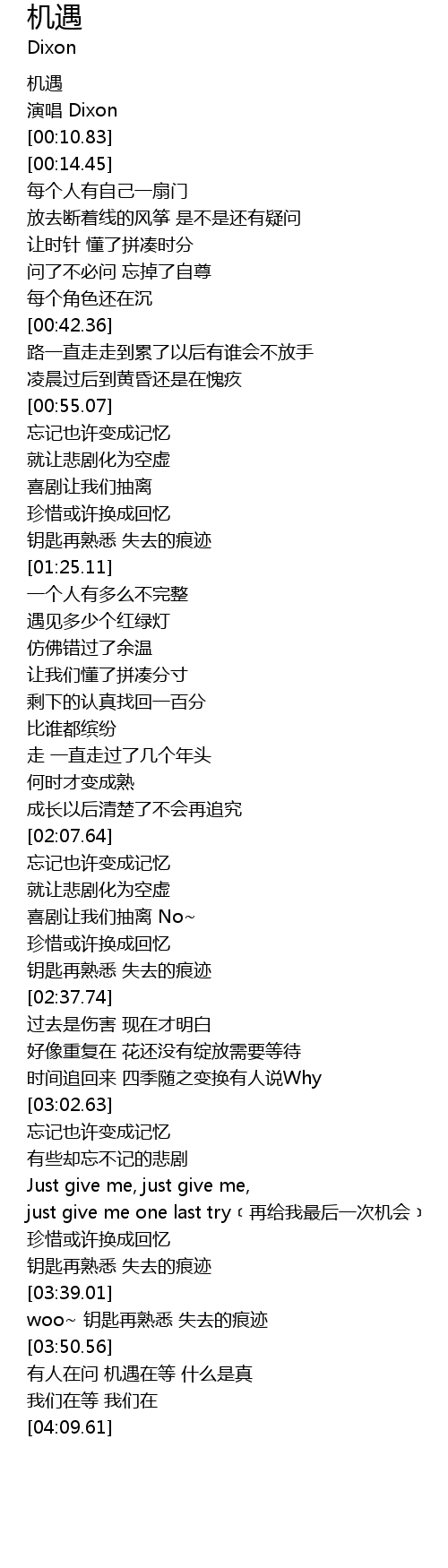 | [00:01.33] | 机遇 |