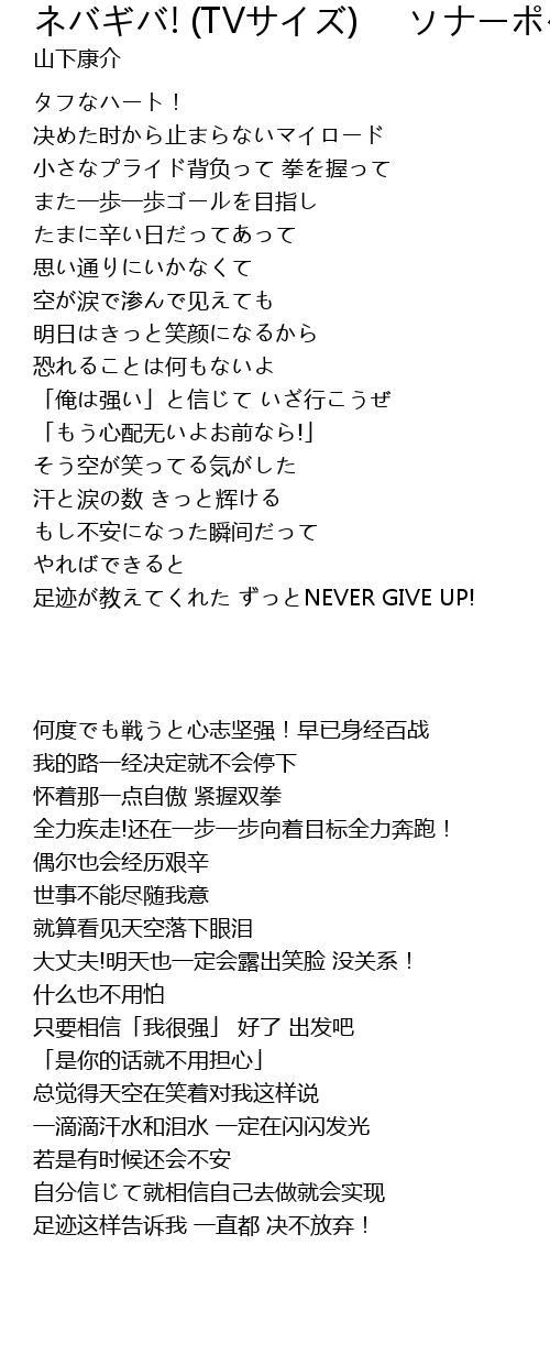| Song | ネバギバ! (TVサイズ) ソナーポケット |
