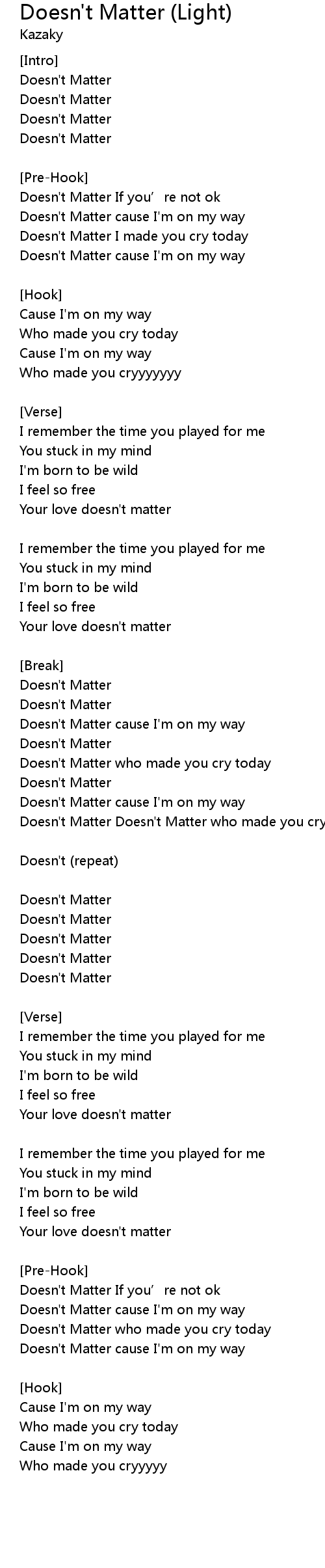 | Doesn' t Matter Doesn' t Matter who made you cryyyyy | |
