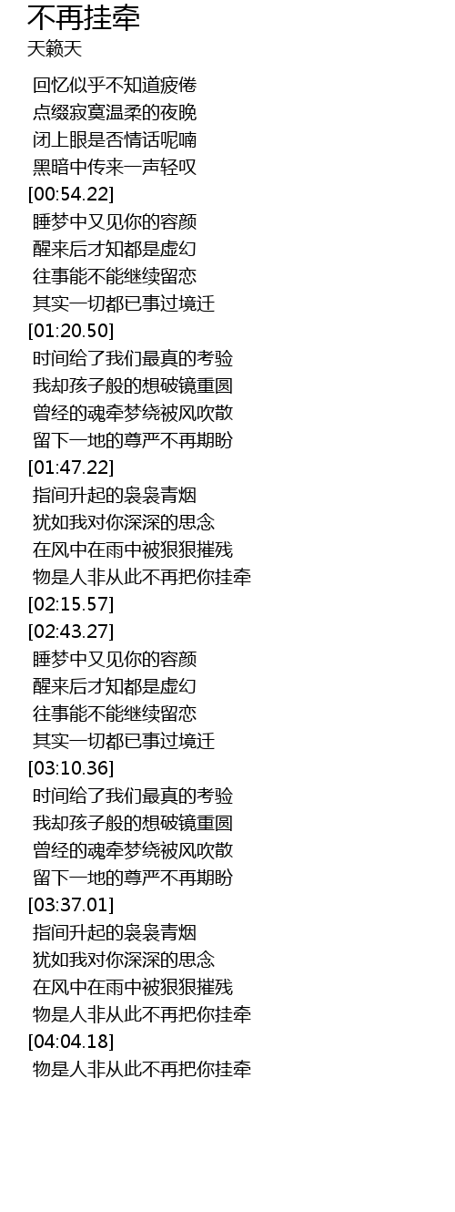 | [04:04.45] | 物是人非从此不再把你挂牵 |