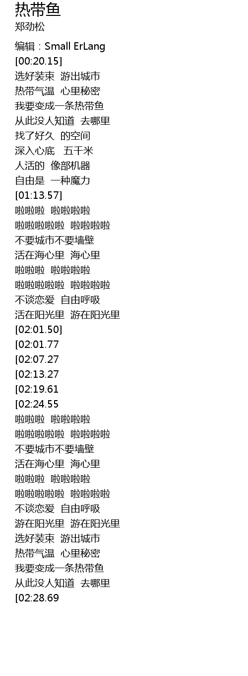 | [00:38.54] | wǒ yào biàn chéng yī tiáo rè dài yú |