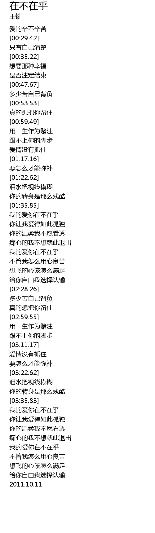 | [02:00.71] | wǒ de ài nǐ zài bù zài hu |