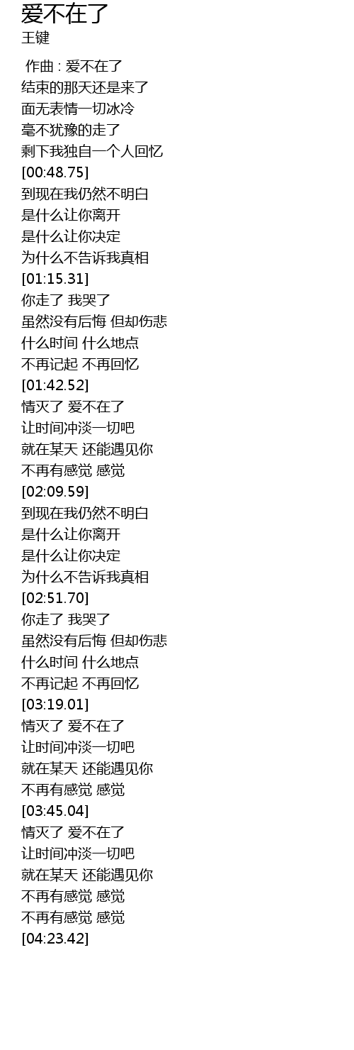 | [01:42.78] | 情灭了 爱不在了 |