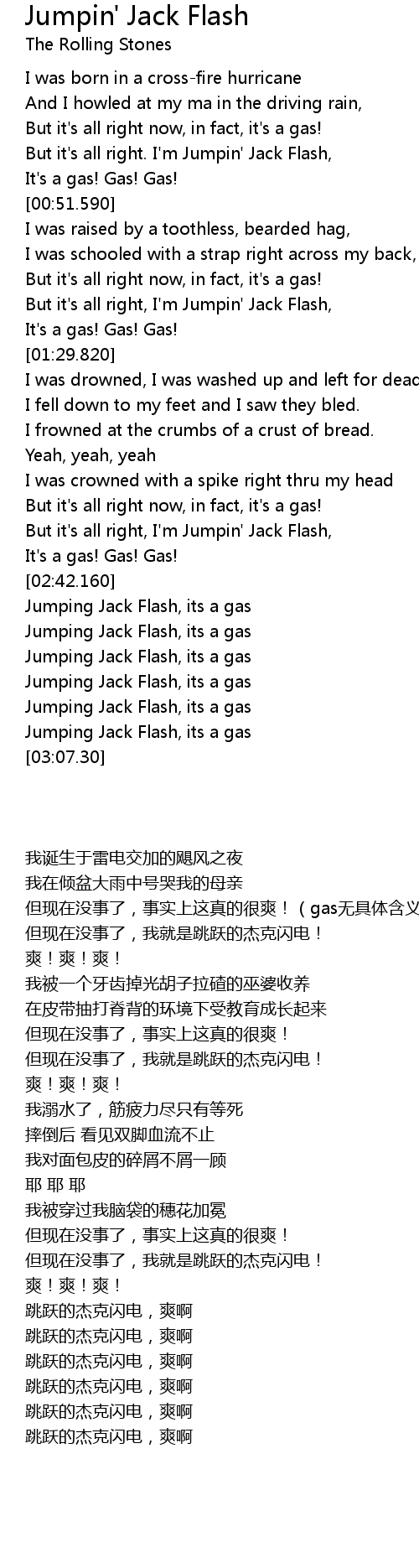 Jumping Jack Flash, its a gas |