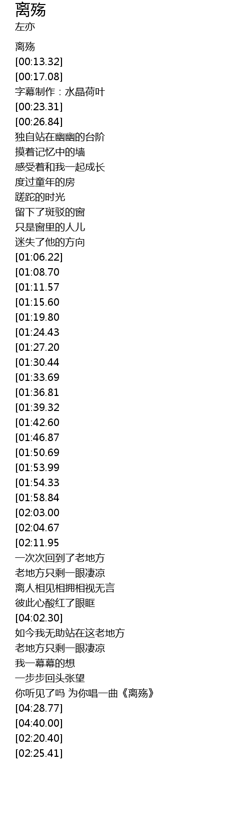 | [04:18.24] | 你听见了吗 为你唱一曲《离殇》 |