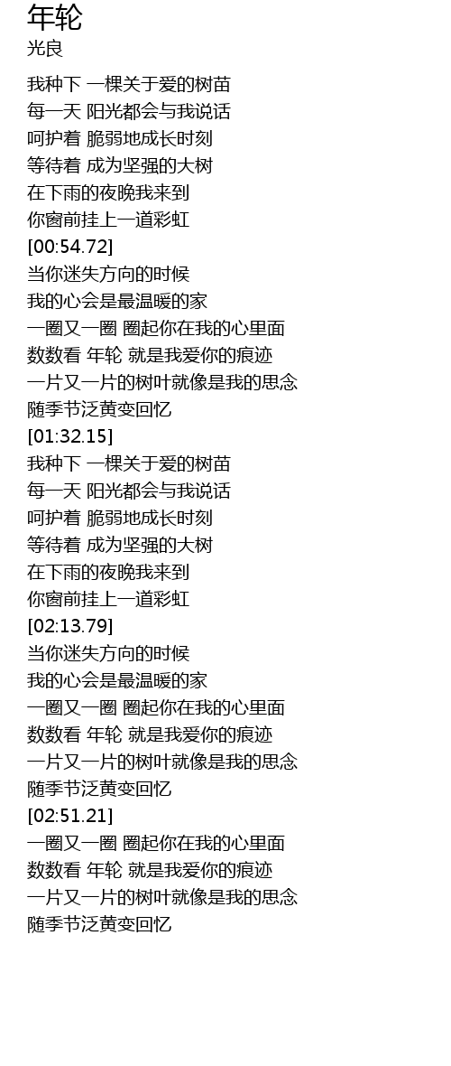 | [03:19.47] | 数数看 年轮 就是我爱你的痕迹 |