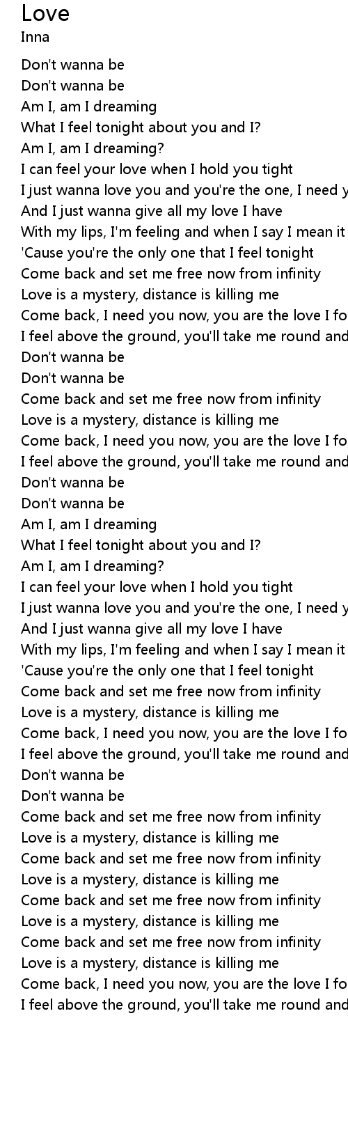 Come back and set me free now from infinity |