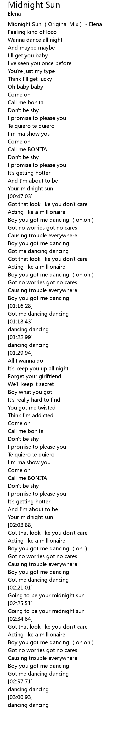 | [00:01.11] | Midnight Sun Original Mix Elena |