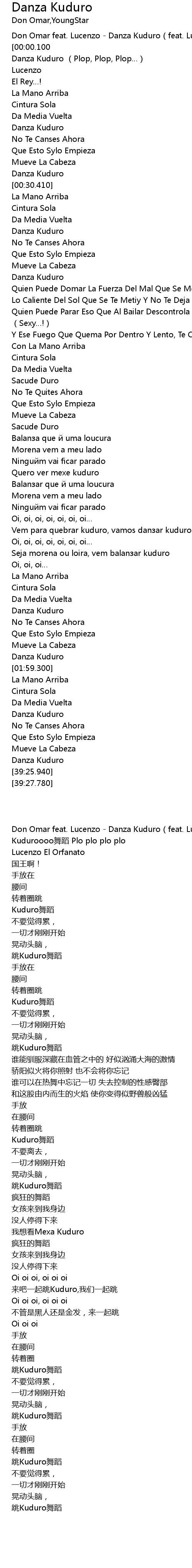 | [00:-3.01] | Don Omar feat. Lucenzo Danza Kuduro feat. Lucenzo |