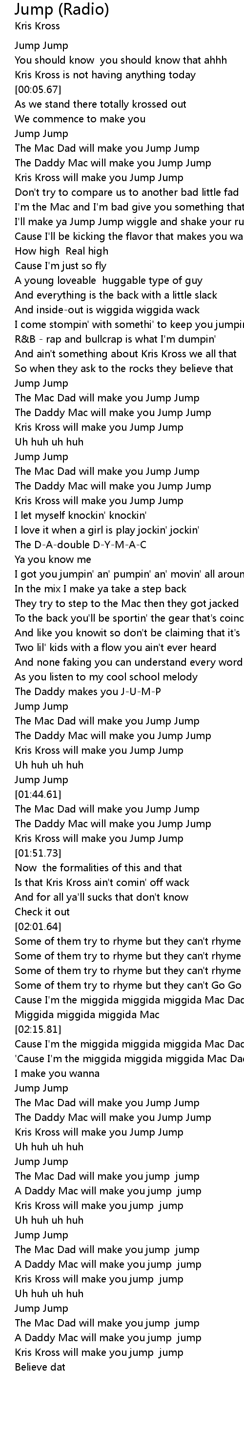 [02:27.22] Kris Kross will make you Jump Jump