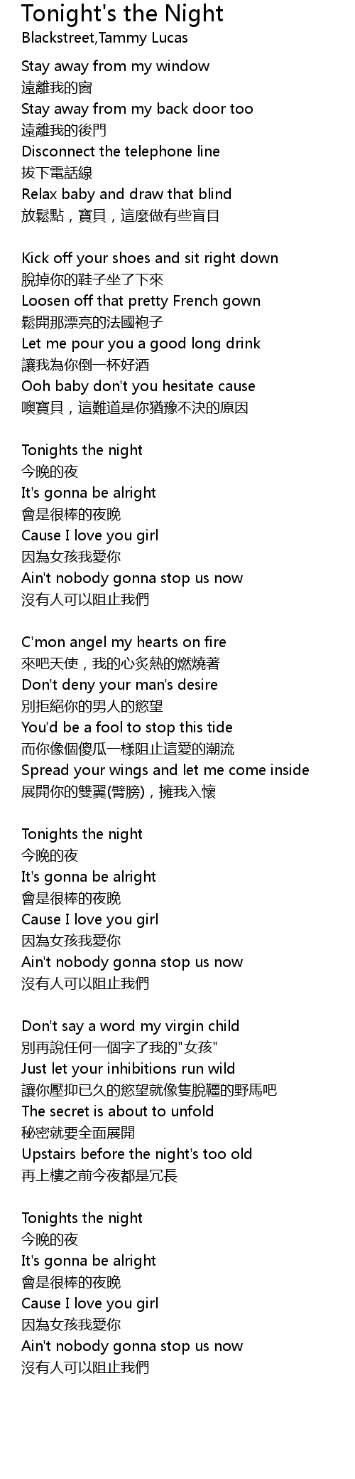 | Song | Tonight's the Night |