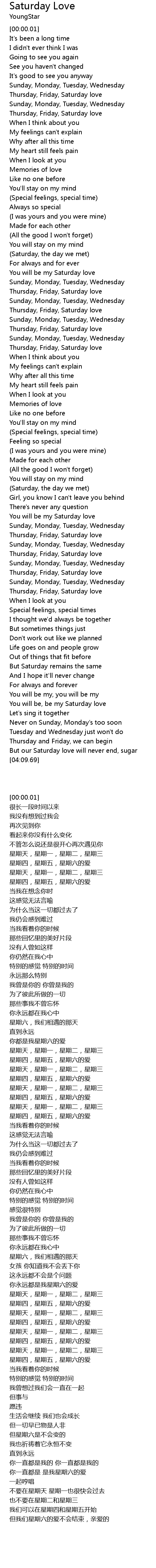 But our Saturday love will never end, sugar |