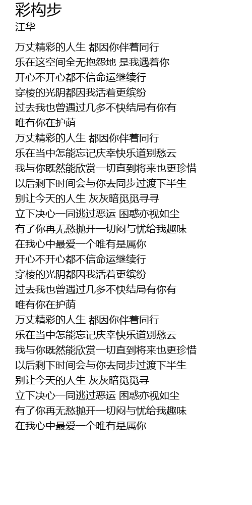 | [00:06.66] | wàn zhàng jīng cǎi de rén shēng dōu yīn nǐ bàn zhe tóng háng |
