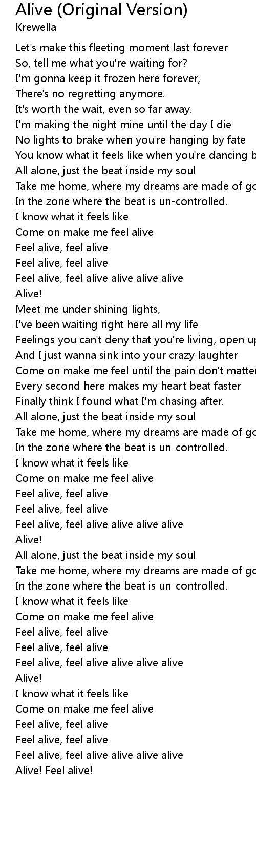 Feel alive, feel alive alive alive alive |