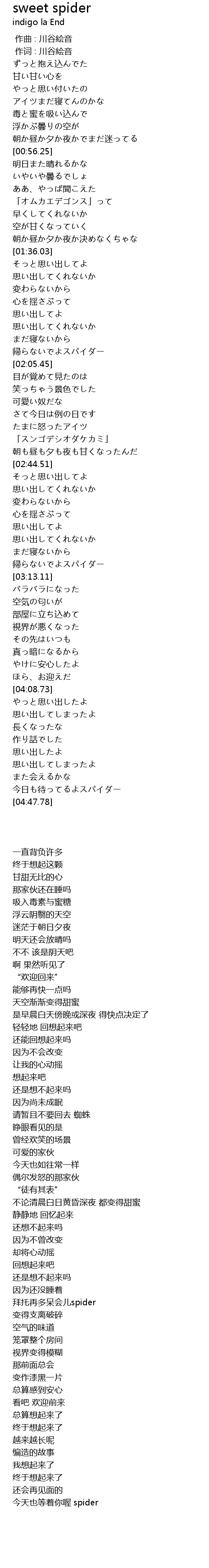 | [04:32.71] | 今日も待ってるよスパイダー |