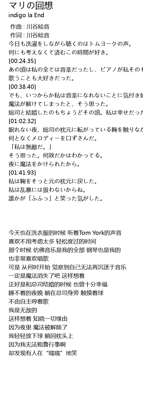 | [00:01.00] | 作词 : 川谷絵音 |