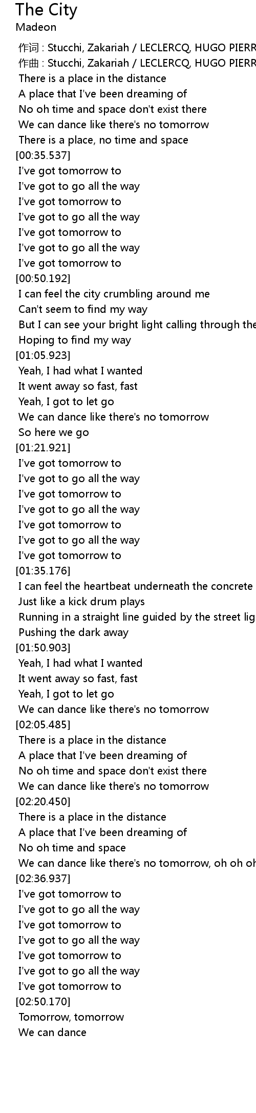 | [02:32.515] | We can dance like there's no tomorrow, oh oh oh! |