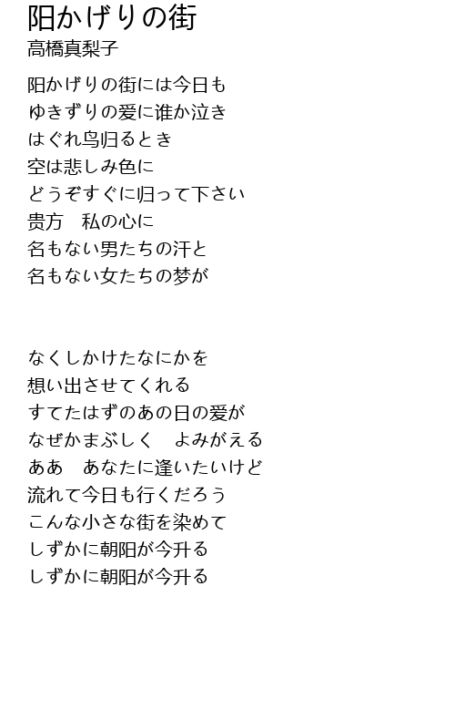 阳かげりの街 yang jie Lyrics