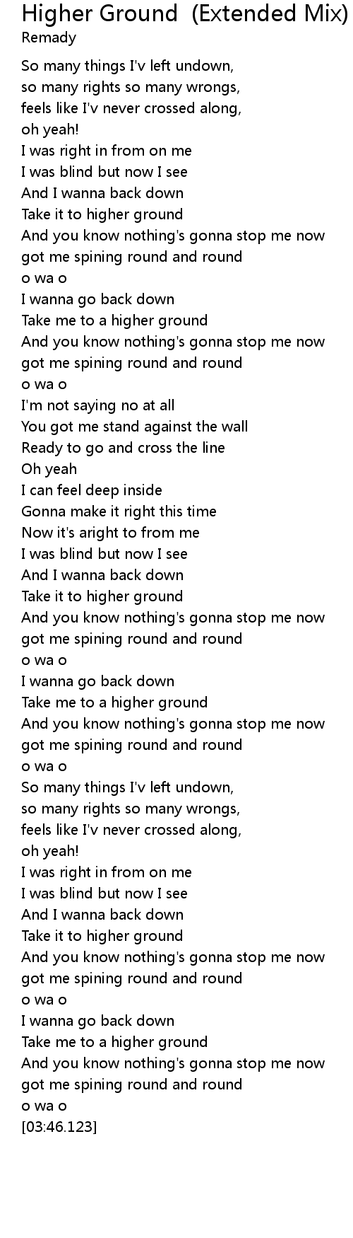 Take me to a higher ground |