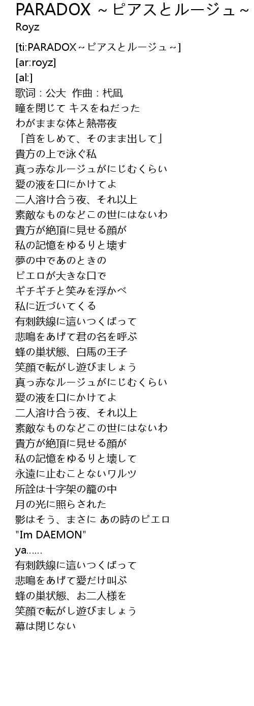 | [ti:PARADOX~ピアスとルージュ~] | |