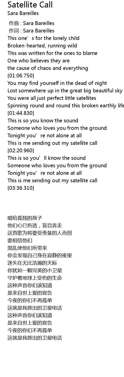 | [00:00.00] | 作曲 : Sara Bareilles |