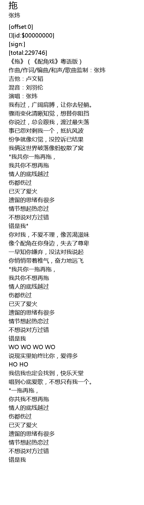 | [00:04.601] | 《拖》(《配角戏》粤语版) |