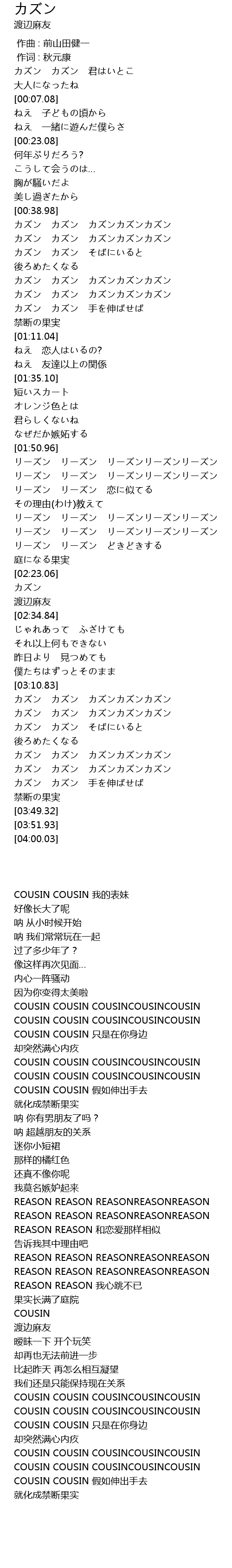 | [00:56.26] | カズン カズン カズンカズンカズン |