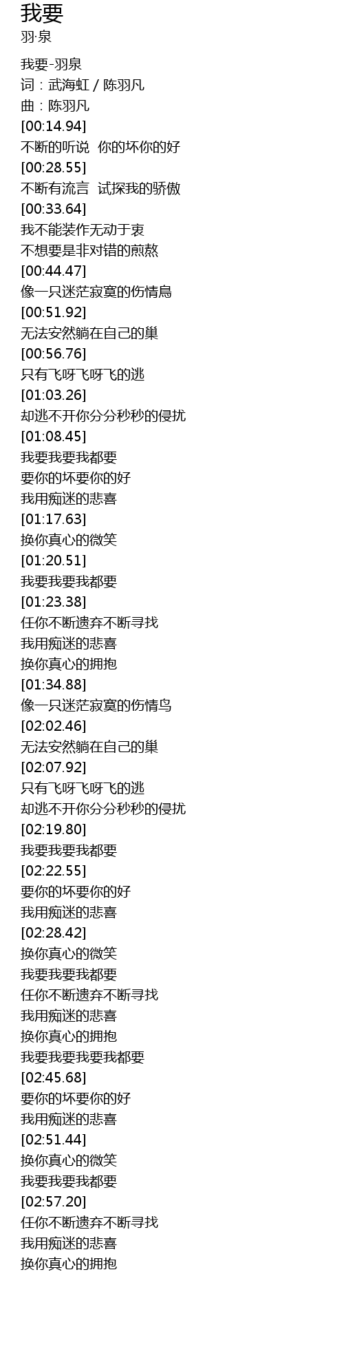 | [02:20.42] | wǒ yào wǒ yào wǒ dōu yào |