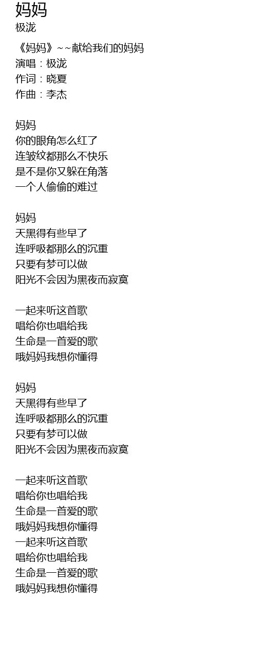 | 哦妈妈我想你懂得 |