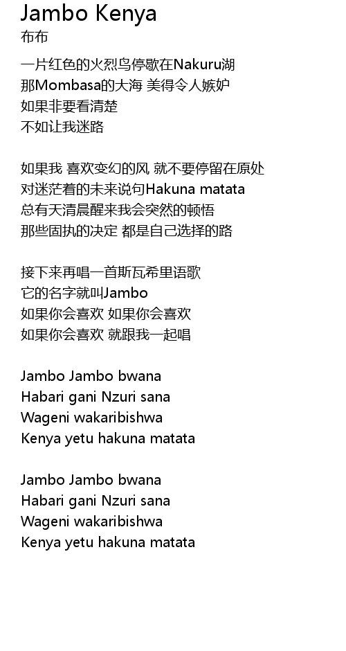 | Song | Jambo Kenya |