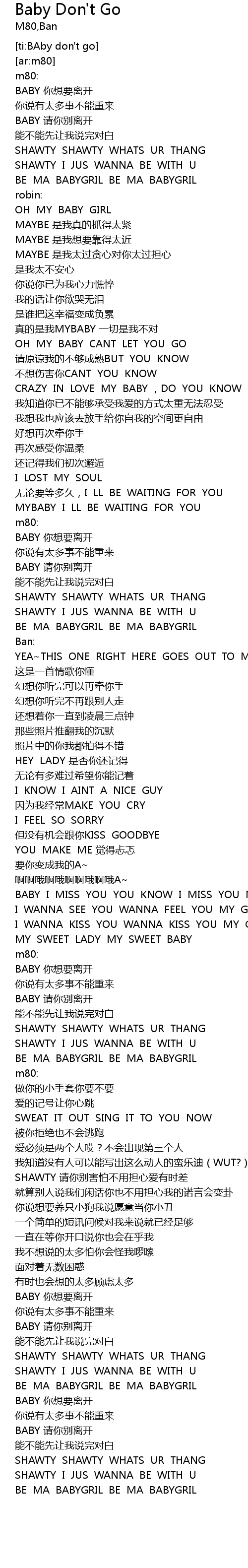 | [00:15.401] | BABY nǐ xiǎng yào lí kāi |