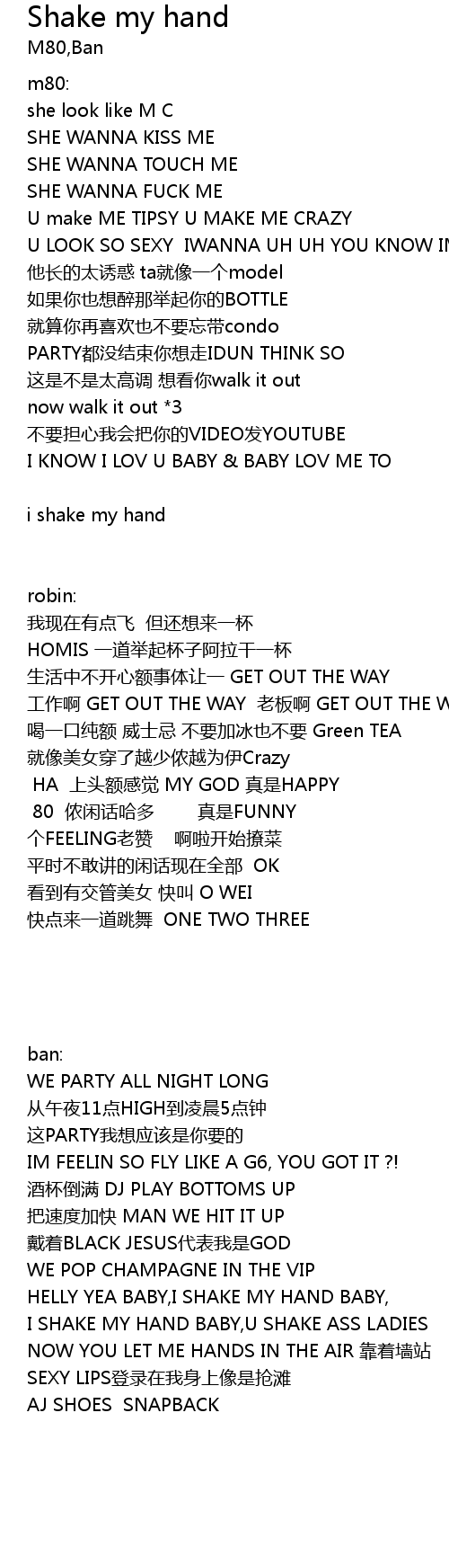 | I SHAKE MY HAND BABY,U SHAKE ASS LADIES | |