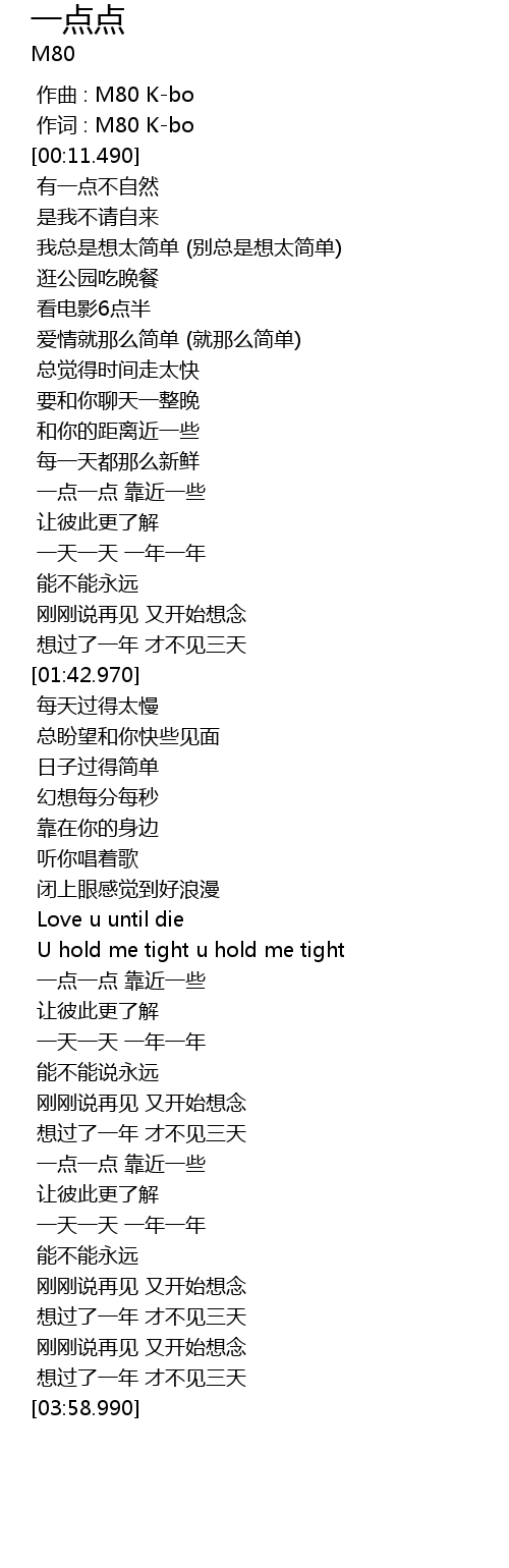 | [01:09.950] | yì diǎn yì diǎn kào jìn yī xiē |