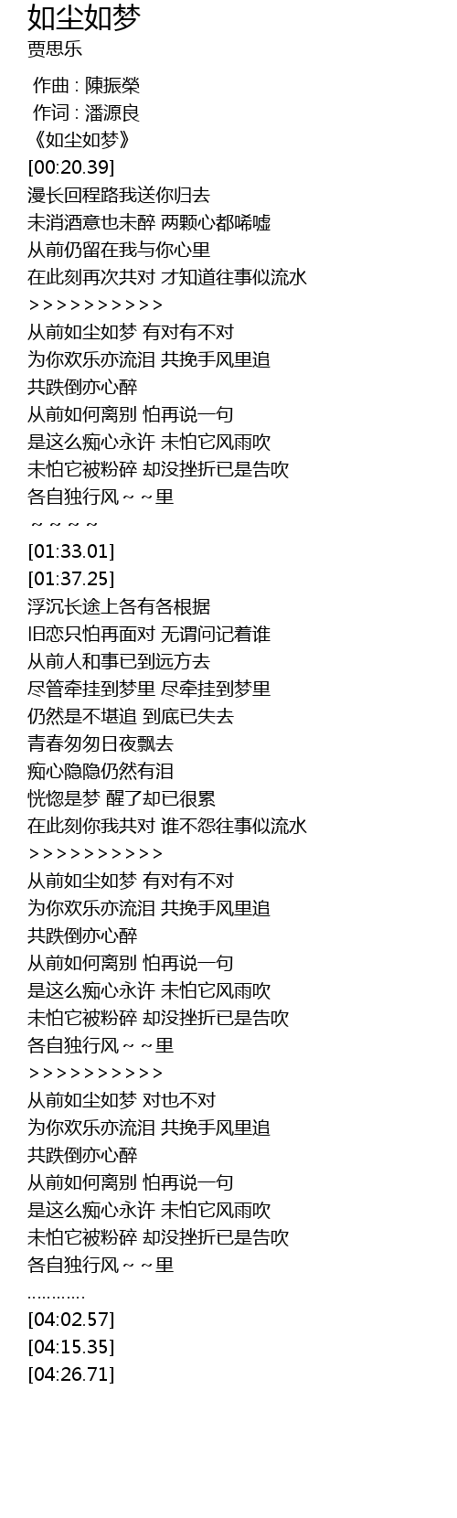 | [03:21.83] | 从前如尘如梦 对也不对 |