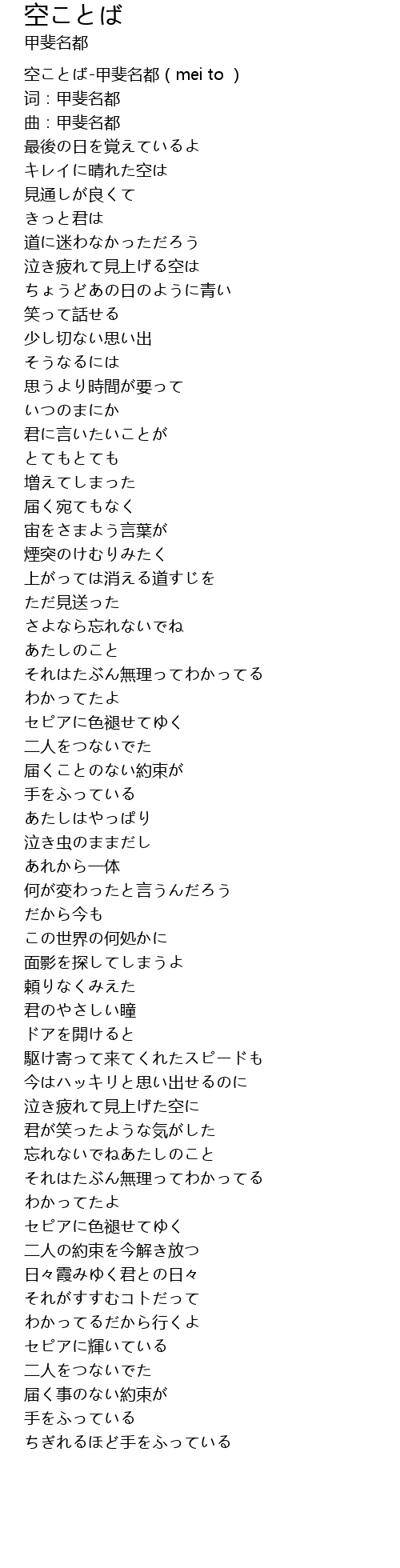 | [00:00.00] | 空ことば-甲斐名都(mei to ) |