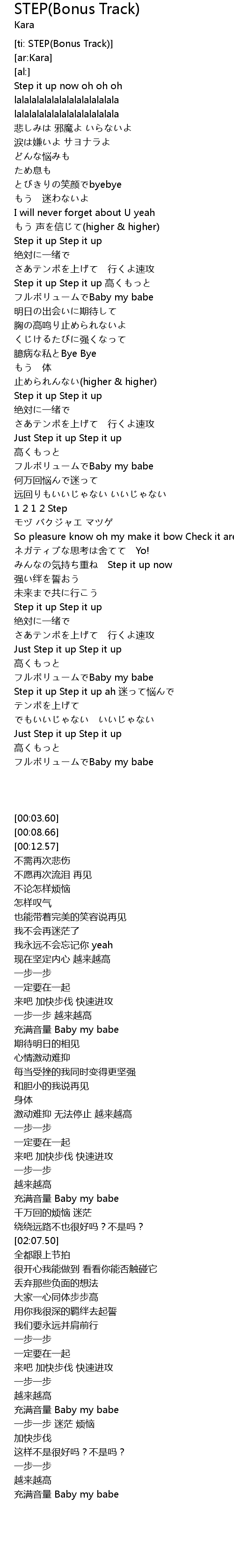 | [02:53.79] | Step it up Step it up ah mi nao |