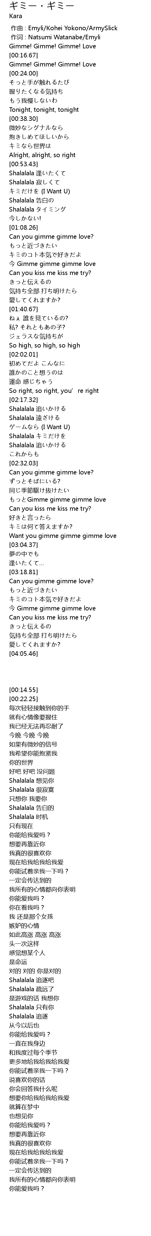 | [00:14.55] | Gimme! Gimme! Gimme! Love |