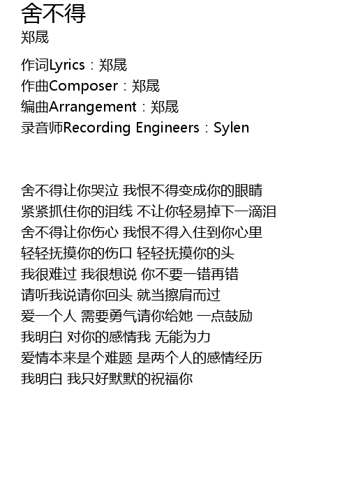| 作词Lyrics:郑晟 | |