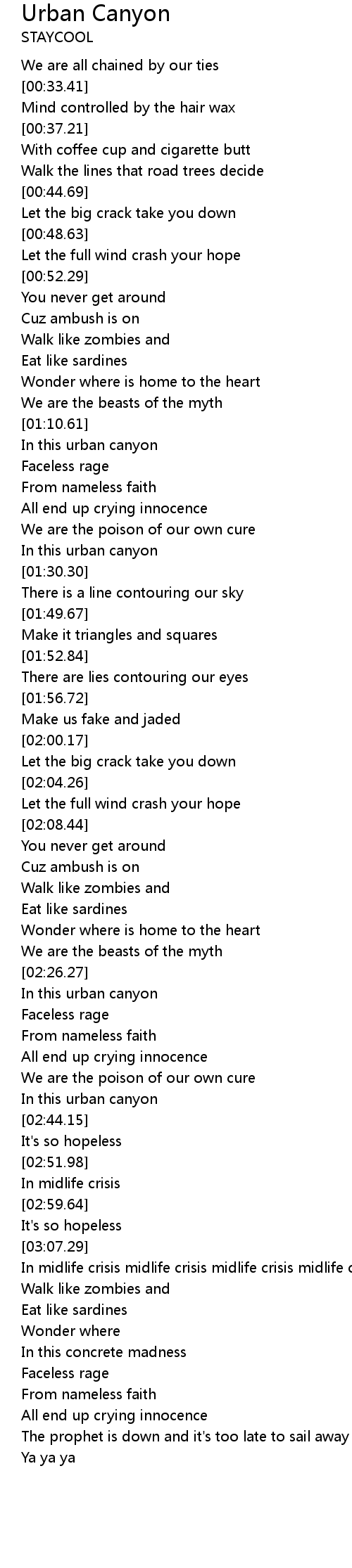 | [03:10.98] | In midlife crisis midlife crisis midlife crisis midlife crisis |